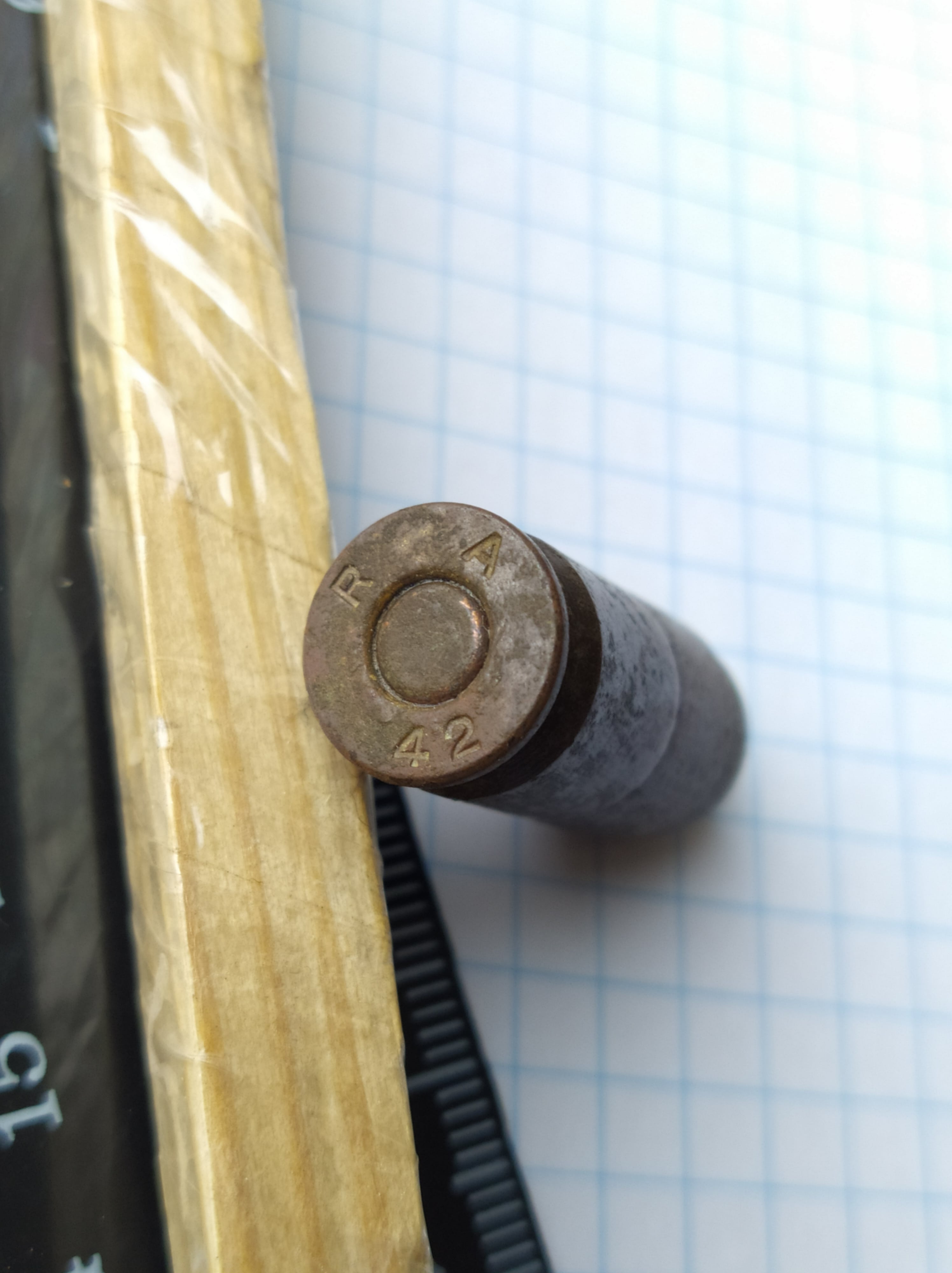 Вітаю знавців! Прошу підказати по належності та маркуванню отакого от маленького "бутусіка")) Копнув учора. Важкуватий, не уявляю який же по масі буде увесь споряджений диск/магазин. Вельми вдячний!