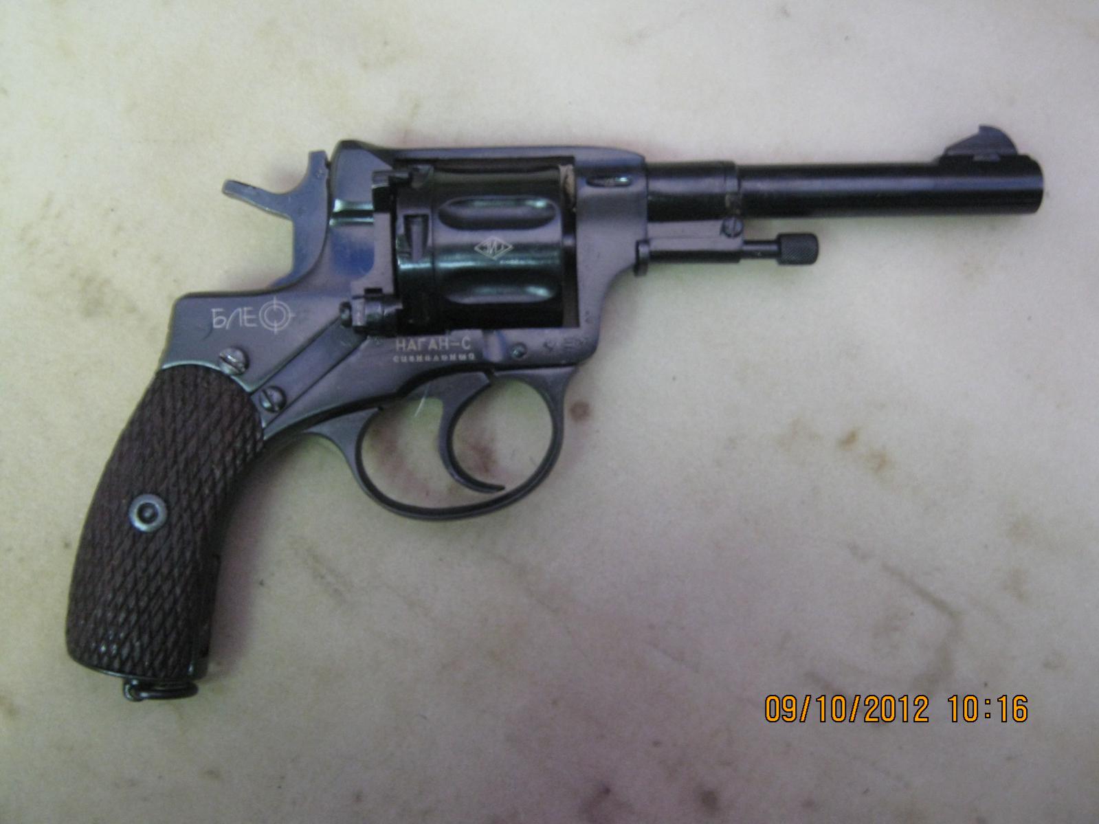Продам Наган "Блеф" под капсюль жевело. 1939года. Без рем.клейм, не шлифован, рамка, крышка и барабан на одном номере, основное клеймо четкое хорошо читаемое. Комплект - револьвер, коробка, документы, шомпол. Цена - 2000грн. Оплата на карту Приватбанка, либо вышлю наложеным платежом. Доставка на покупателе. Возможна пересылка через Нову Пошту, Автолюкс, Деливери, ИнТайм, Гюнсел. тлф - 0663642608; 0630649790