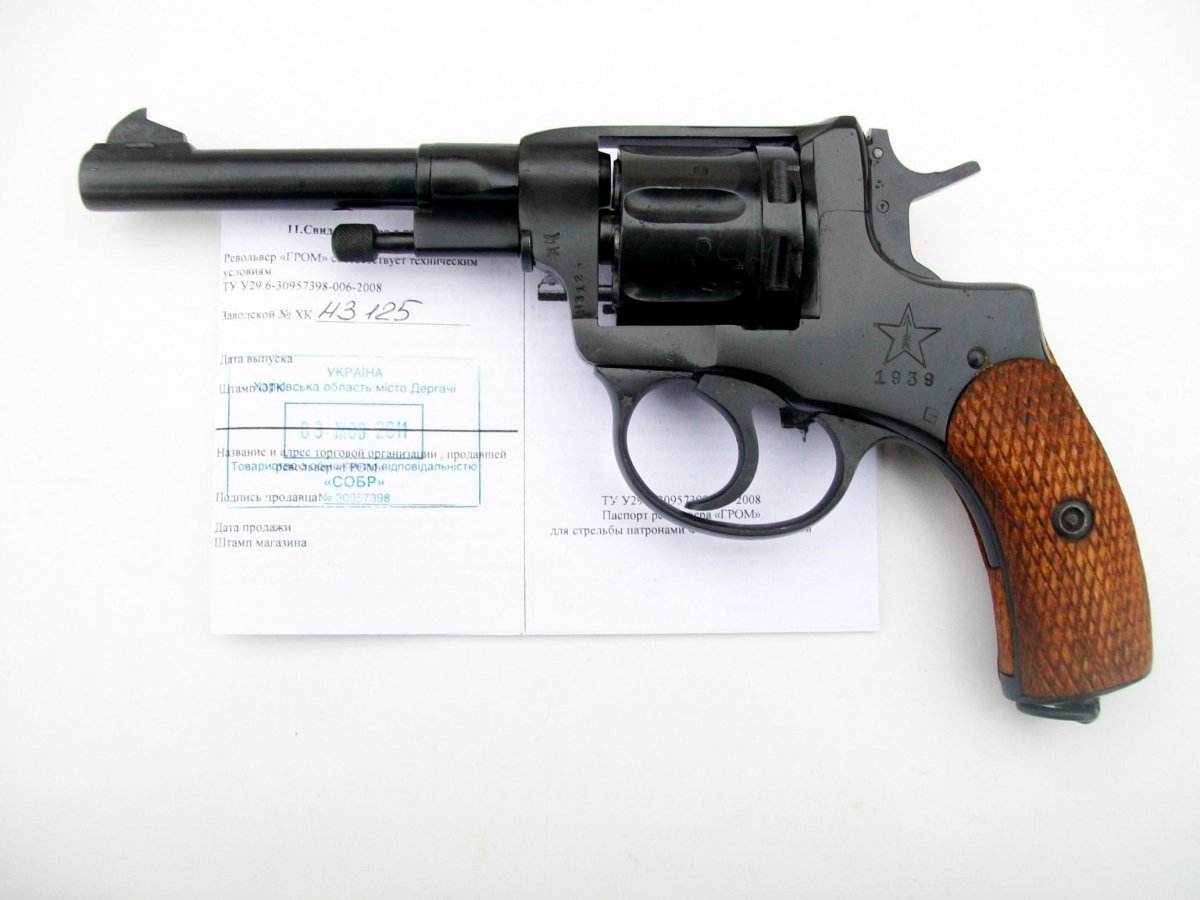 Продам Наган Гром пр-ва СОБР 1939г.в.Все на одних номерах.Боевая пружина целая.Лайнер гладкий.Накат хороший.Оплата на карту Приват. Пересыл Новой почтой. Цена 300долл.