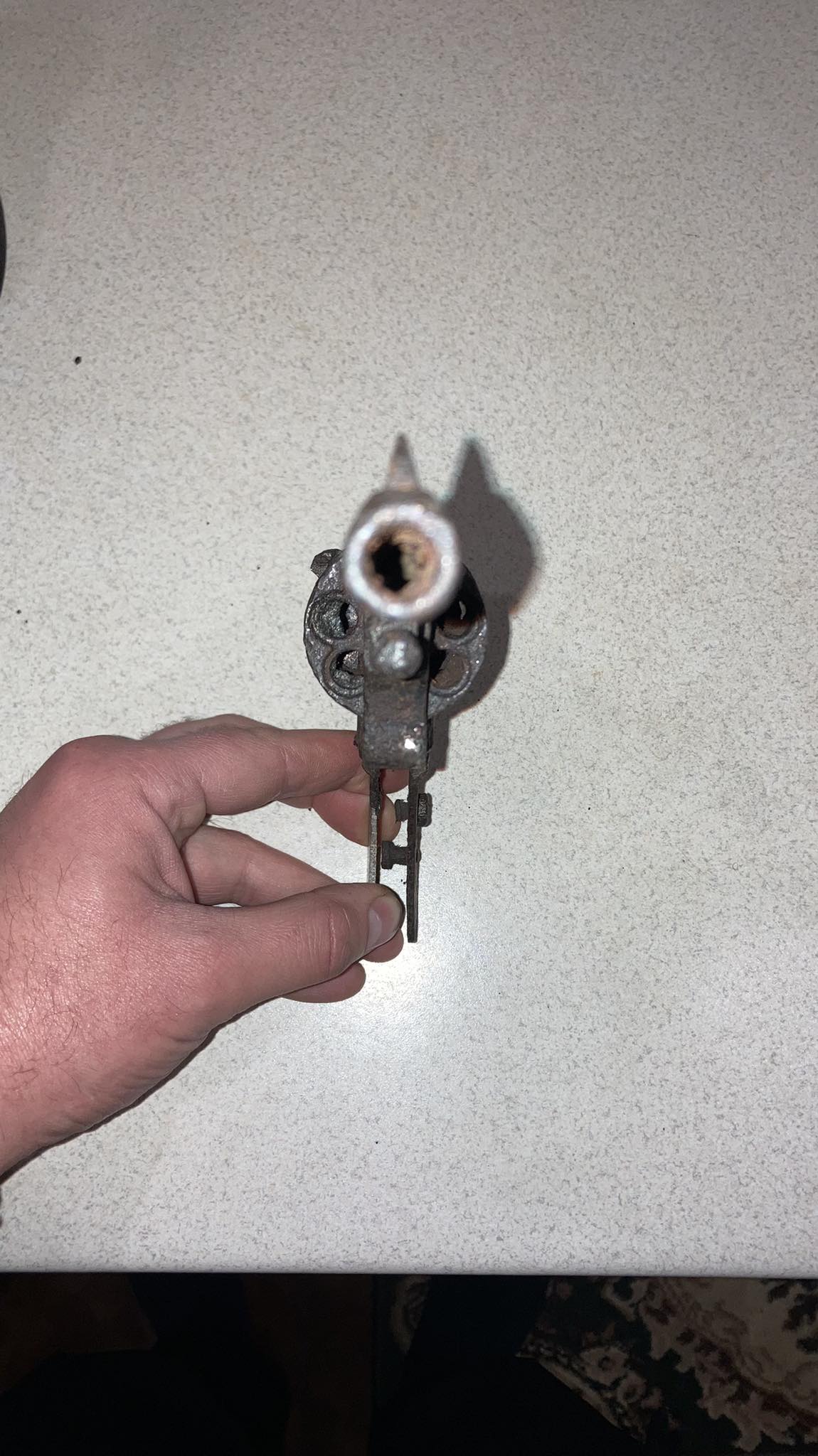 На продажу выставляйте со снятой крышкой. Внешне но потрёпан но в подобных револьверах иногда внутренности бывают в хорошем состоянии. Это влияет на цену. Если в каморах барабана оставались гильзы, повреждений меньше. Это тоже стоит показать.