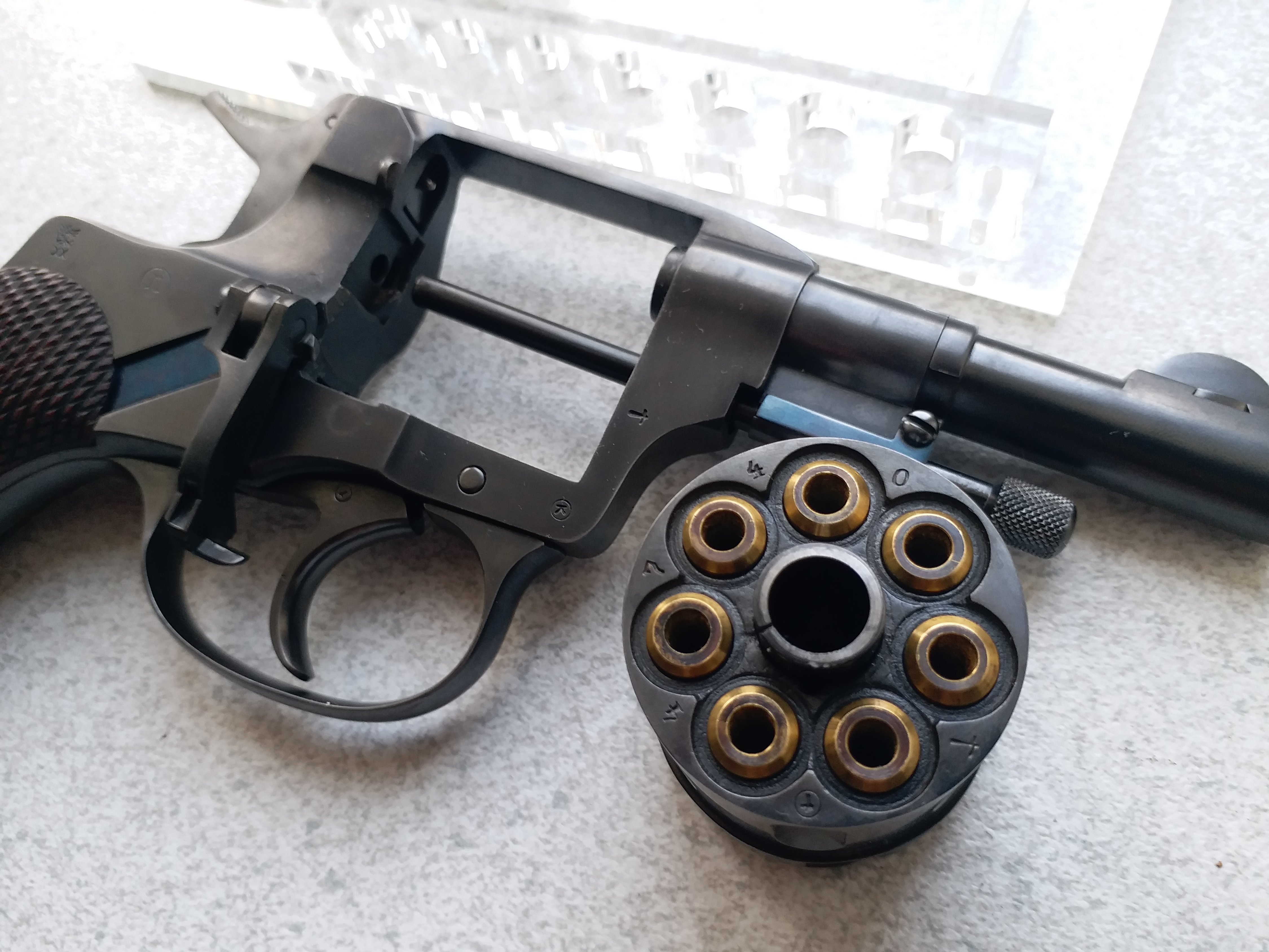 Коротше солянка, такий собі франкенштейн. Рамка "цар" від "Грома", барабан з арсеналу з перебитим номером, кришка ліва... Хто там пропонував за ЦЕ 1500 умовних? Чи то я відстав від життя і чогось не розумію в Наганах, чи то лижі явно не їдуть)
