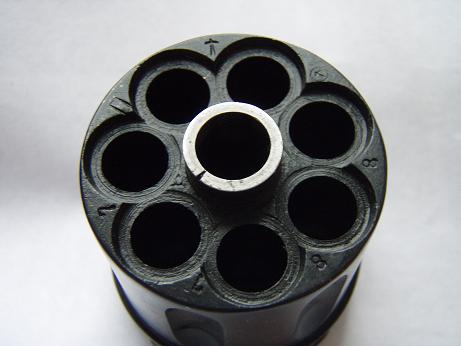 Барабан не восстанавливался. Макетные патроны сидят плотно. Состояние камор не идеальное , но для флобера подходит. Можно также использовать картридж под жевело.