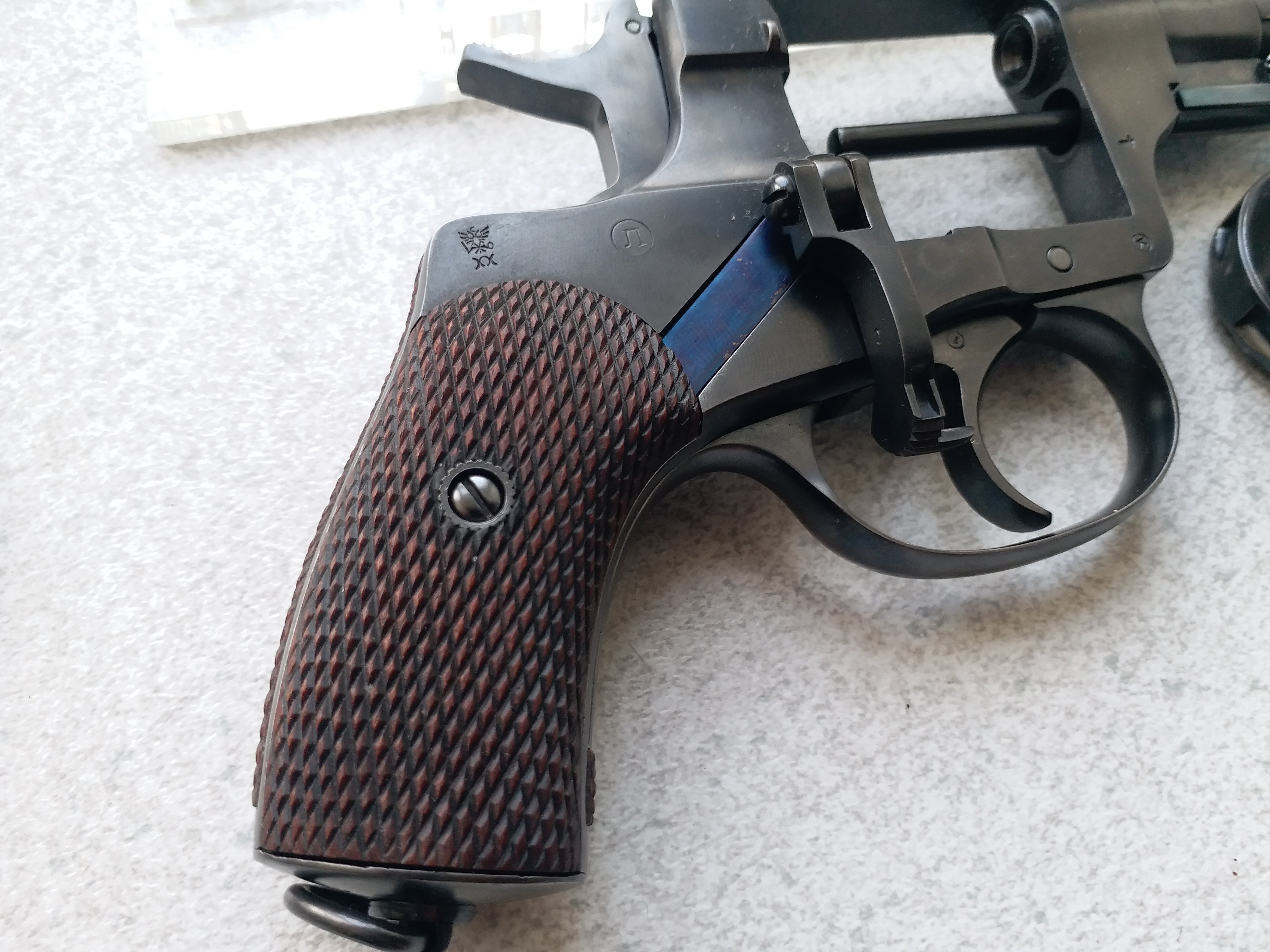 Повторюсь - предмет не для колекціонерів і не для реконструкторів. А для того, щоб повимахуватись перед хлопцями в дворі, які далекі від поняття "автентичність" і "історична відповідність". Які вважають, що "молоток" - це круто, а два "молотки" на барабані - ще крутіше. А те, що ті "молотки" є клеймом техприймання ДВОХ РІЗНИХ періодів випуску Наганів - то не важливо.