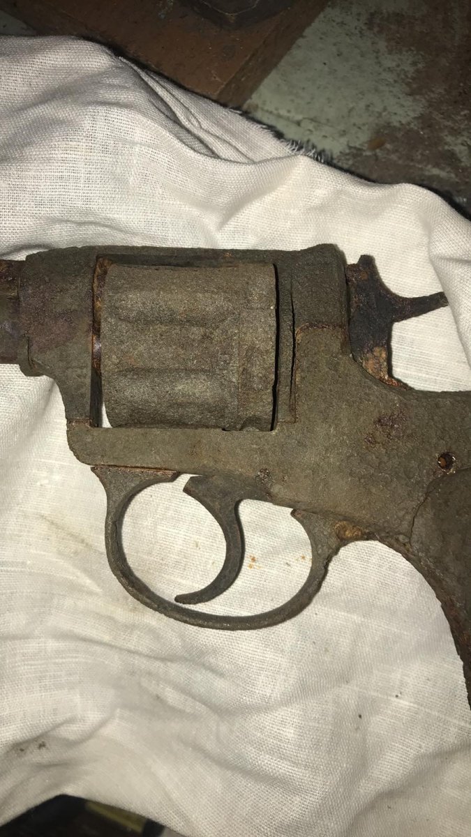 Приветствую камрады, друг попросил что б оценили данный девайс Нагана выкопанного на позициях. курок и спусковой механизм не зводяться, барабан крутиться, царський.За ранее спасибо