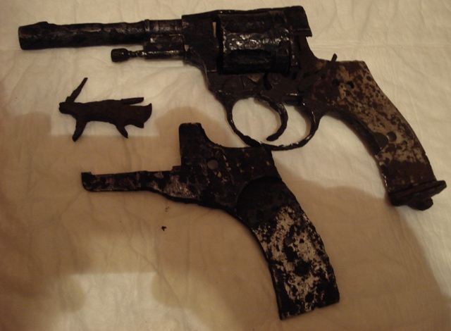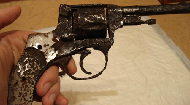 Доброго времини суток камрады. Продам Вот такой наган. Слегка почищен, барабан не снимается (внутри закипели гильзы, которые потом ктото тупо просверлил), деактив временем. дверца открывается, барабан вращается, видна звезда и год 1937. всего 300 грн.