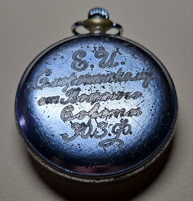 Доброго вечора. Будь ласка, підкажіть за ціною. Годинник не йде. Напис: "Е.И.Смеречинскому от Военного совета Ю.З.Ф."