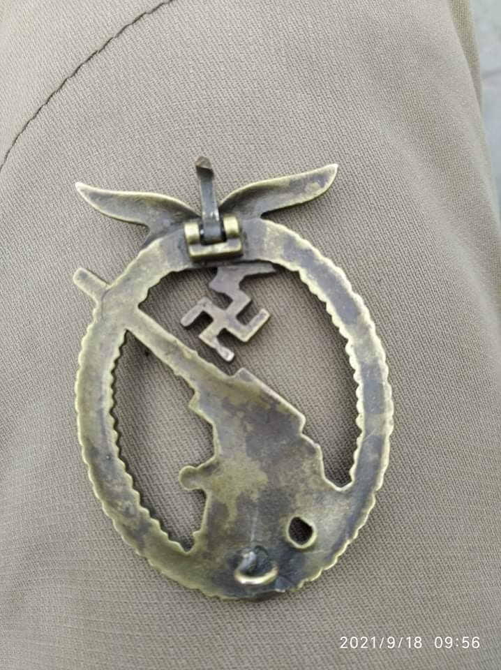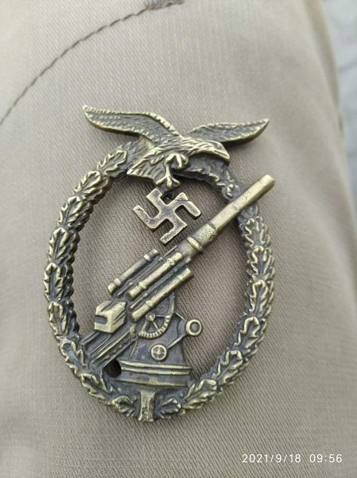 Тоже думаю, что это реплика "Знака зенитной артиллерии ВВС" (кстати, именно Люфтваффе, существует похожий - "Знак сухопутной зенитной артиллерии": https://awards.wiki/germany/suhoputnaja_zenitnaja_artillerija/201.html).