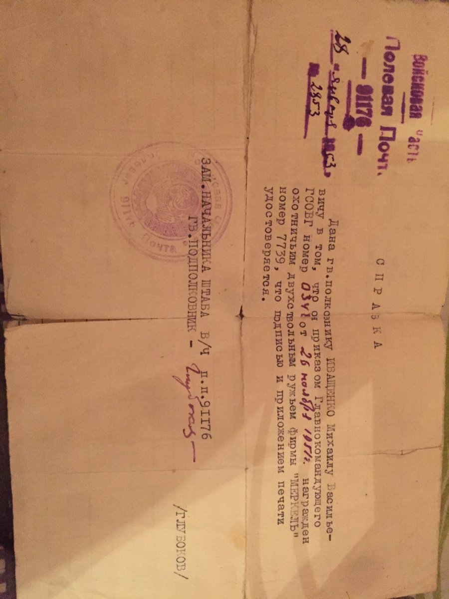 Здравствуйте форумчанам! Начну из далека, купил я себе ружьё 16 калибра фирмы Merkel. Год выпуска 1949. С ружьём дали наградной лист. Помогите идентифицировать!