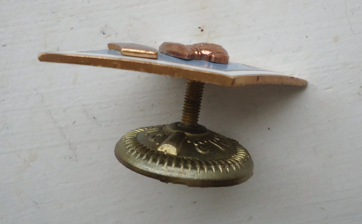 Фотографии копий знаков которые есть у меня, с аналогичными эмалями и гайками дам завтра, чтобы сфотографировать при солнце. Аналогичного знака у меня в коллекции нет, не видел его ни разу и в живую, т.к. не собираю ромбые,поищу и дам ссылку на изображение оригинала в инете, я где-то встречал.