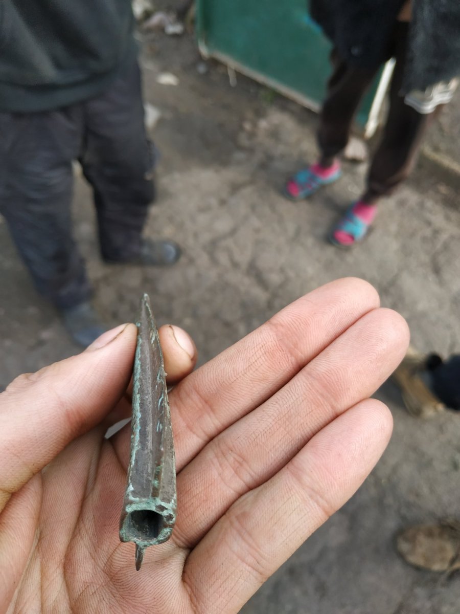Здравия! На фото обломок наконечника копья позднего варианта типа "Дремайловка", нервюра трапециевидная в сечении. Поздний период бронзового века (1700-900 гг. до н.э.)