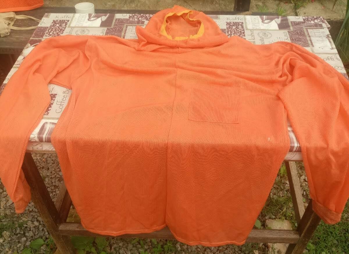 Вітаю.Колись бачив щось подібне,але захисного кольору.Пояснювали,що сітка має товщину пряжі більше 5мм,а зверху одягається нормальна подовжена сорочка з тонкої натуральної тканини,таким чином комари та мошкара не можуть вкусити людину,бо у них закороткі хоботки та й вентиляція поверхні тіла покращена...:eek:Якось так...