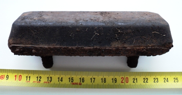 Вчера в лесу попадались такие резиновые накладки на болтах. Прихватил одну. Маркировки не нашел. От чего она? И нога, вроде, от старого мотоцикла, судя по ржавчине. Можно ли определить, от какого она мото?
