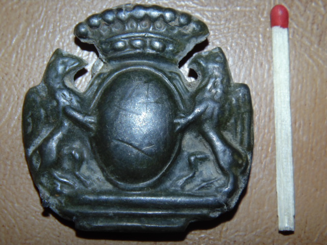 Похоже на дворянский герб но на чей не подскажу . похожие рисунки попадается на дворянских пуговицах ливрейках http://www.pugoviza.ru/files/class_butt_cat.shtml?d=69&n=king&nreg=&gr=&fn=king