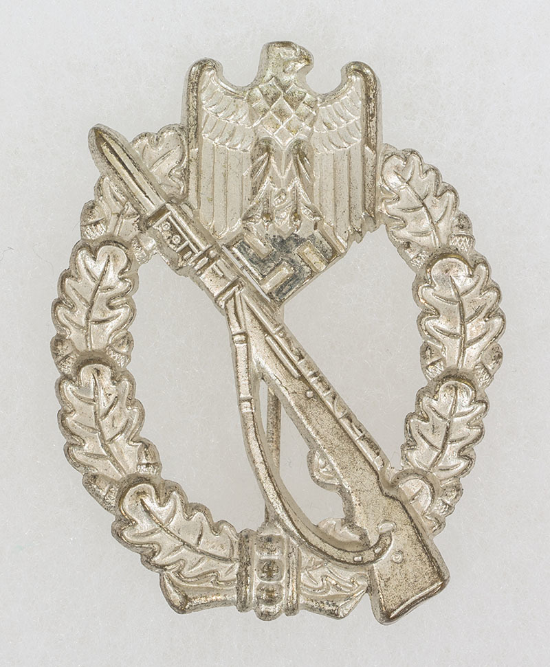 Это не накладка, а часть знака. Вырезка из "штурмового пехотника". Видимо сделали эдакий фрачный значок. https://ru.wikipedia.org/wiki/Нагрудный_штурмовой_пехотный_знак P/S На фото знак ДЛЯ ПРИМЕРА. Фото - НЕ МОИ!