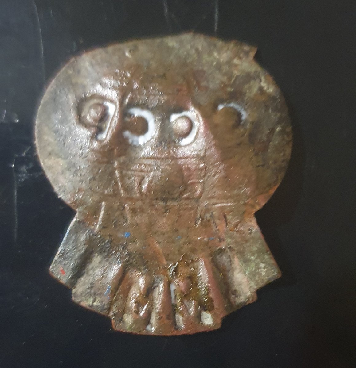 Здравствуйте,сперва подумал что знак т.к. присутствуют эмали ,материал алюминий,вес 2.52.(обломан верх).с чего мож. быть?