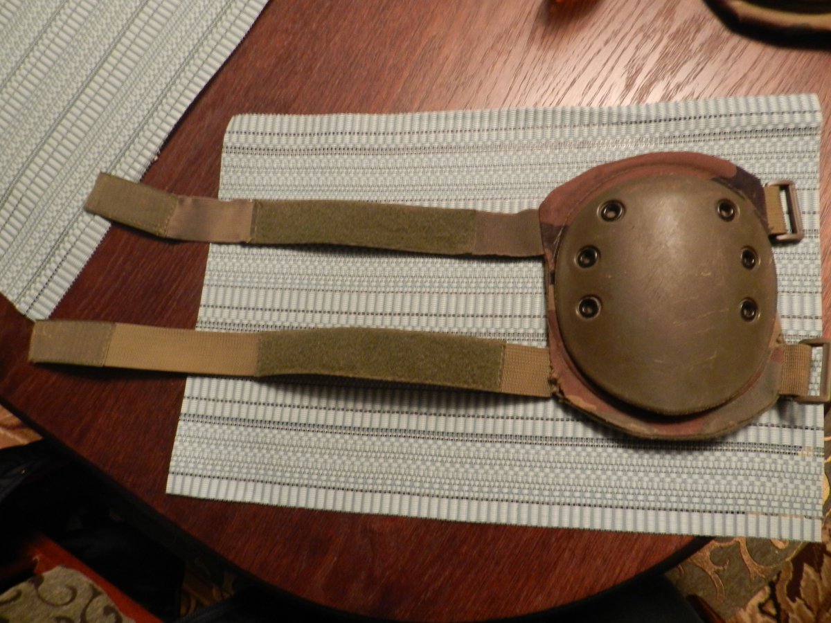 Наколенники б/у две штуки. На одном надо подшить крепление ремня. На втором лямка для ремня оторвалась и потерялась. На фото все показал. Цена 150 грн. Или если поштучно то первый -100 грн. с отрованой лямкой -50 грн.