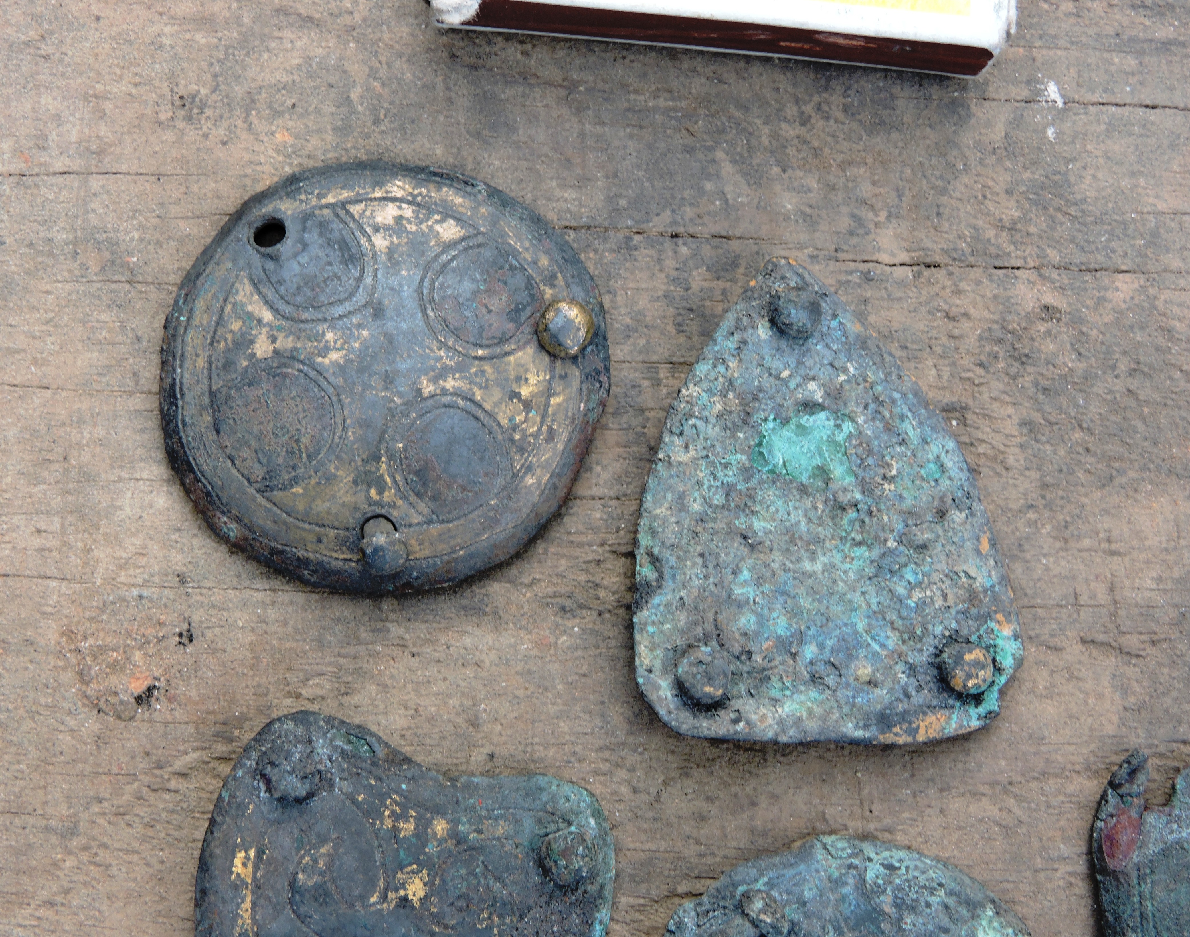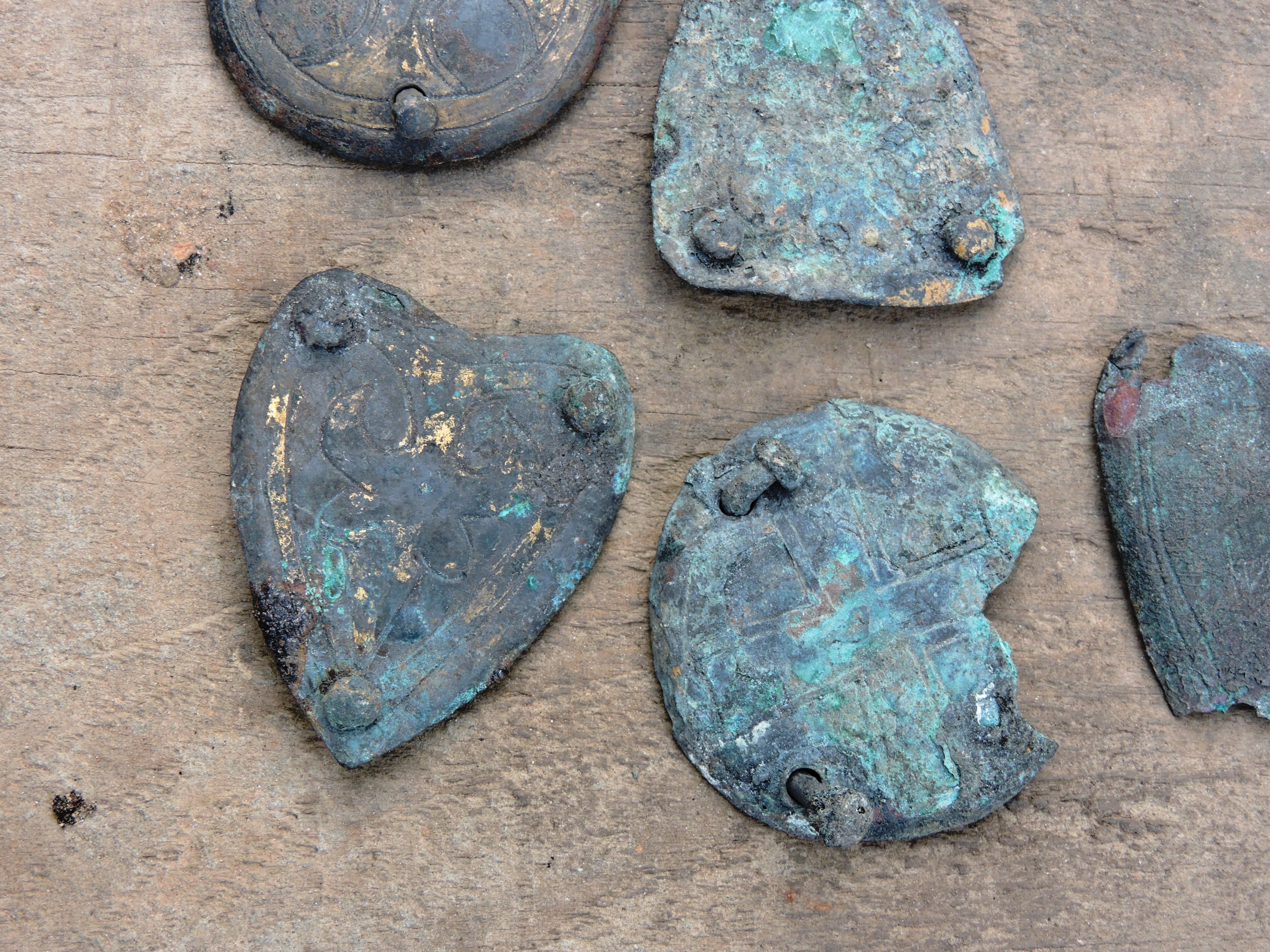 Всем доброго времени. Попросили помочь выяснить от чего накладки, но я в древности не силен особо. Наки предположительно КР, а так как все с одного места и вообще ямы и накладки наверное тоже КР. Есть мнение что они от колчана, так ли это? Подобных не смог найти в инете, дажена вилке. Либо как-то не так запрос давал. На зарисовках воинов тоже подобного не увидел