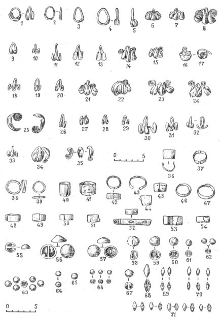 Накосник или височное кольцо. Очень похоже. Величина и форма колец служат признаком для выделения в них отделов: перстнеобразных, браслетообразных, среднего размера колец и фигурных. Самые малые перстнеобразные либо нашивали на головной убор, или вплетали в волосы. На картинке под номерами 40-51 примерно похоже. Вот только узоры..... Я бы с мылом помыл изделие.
