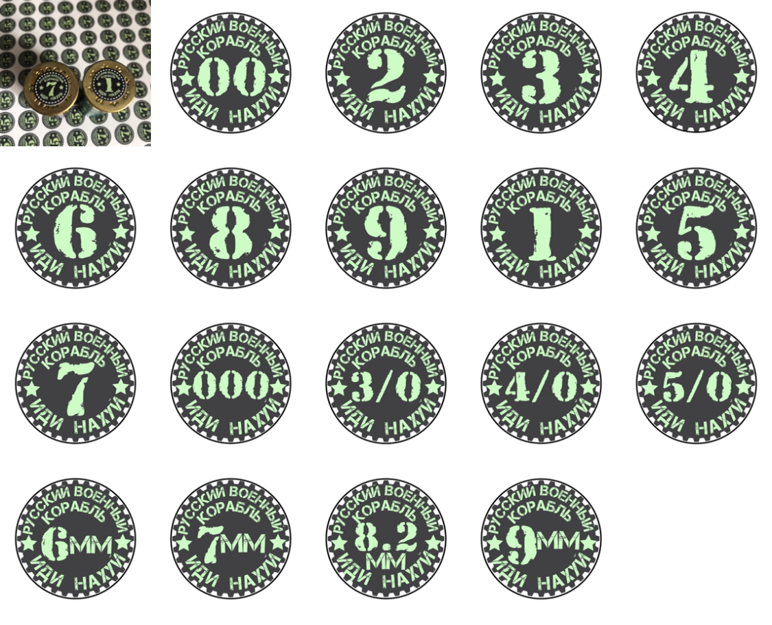 З написом «руский военный корабль иди нахуй» Ціна за 100 шт. 30 грн. є наступні варіанти: