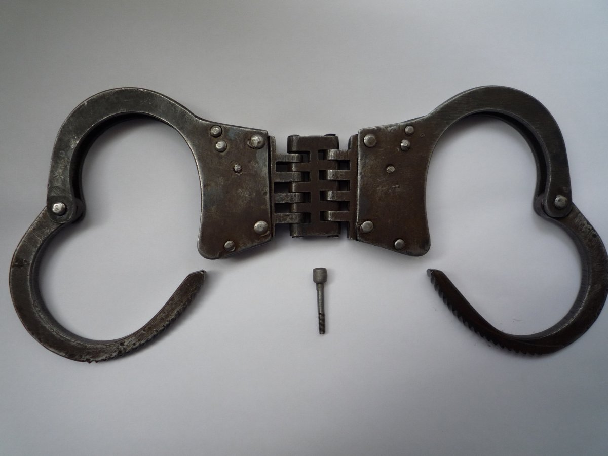 Наручники для сопровождения спецконтингента. Принцип открытия: вкручиваешь ключик (винт) до упора и с усилием оттягиваешь на себя - наручники открыты. Ключик (винт) в наличии один, предполагаю не родной, т.к. не удобен в эксплуатации. Механизм и зубья - функциональны, наручники вполне можно использовать по назначению либо в коллекцию. Механизм, зубья и подвижные части - смазаны. Состояние и остальные подробности - на фото. Допфото по запросу, отвечу на вопросы. Цена - 700 грн. + Бонус Перевод на карточку ПриватБанк, пересыл Новой Почтой за счет покупателя. Продажа по Украине. Убедительная просьба - "Все вопросы и предложения в Личные Сообщения".