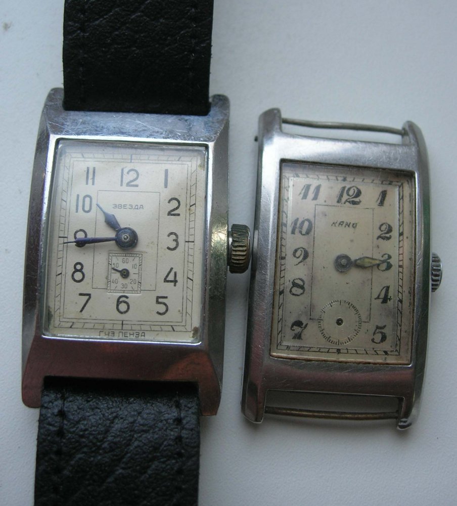 Приветствую всех камрадов! Давно меня тянуло на часы формы "кирпич"- но все как-то не попадалось.Надыбал как-то "звезду" по сносной цене- не удержался- сделал и посадил на сплошной ремешок.Ношу дома по настроению-мне нравится.И вот попались наручные в нормальном сохране. Внутри при вскрытии обнаружилась приятная надпись- Stowa!!! Цифер в норме , мех внешне внорме, впринципе можно запустить..... По размеру- чуть уже нашей звезды, что огорчает.... Вот кстати , как выглядит звезда на ремешке- что скажете , камрады?