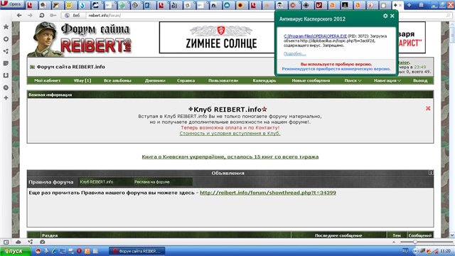 у меня вчера тоже Аваст ругался дважды за вечер - советовал не открывать какое-то нехорошее приложение, а я как раз на Райберте был......повторится - сделаю принтскрин.