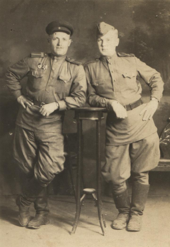 Мой дед по маминой линии Соловьев Иван Николаевич был призван в армию в марте 1944,до этого с 1942 по начало 1943 года был в оккупации( Сталинградская область). Был направлен в 356 запасной стрелковый полк в отдельную артбатарею, где был обучен по специальности наводчика 76-мм орудий, на фронт попал в августе 44-го , в 38 армию,121(или 191) стрелковая дивизия 1-го, а потом 4-го Укр. фронтов, 297 арт. полк.Служил связистом передового наблюдательного пункта, много раз под огнем врага восстанавливал связь, был контужен и легко ранен. Освобождал города Старый Самбор,Жешув,Новый сонч,Санок,Кросно,Краков,Горлица,Ратибор,Оломоуц,Б ратислава,Прага. Имел две медали За Отвагу, медаль За Боевые Заслуги и За Победу над Германией. О войне очень не любил рассказывать. Говорил только о том, что часто приходилось спать на ходу. На вопрос убивал ли немцев, рассказывал случай,о том, как в Польше в каком то населенном пункте подошел к какому то дому, глянул в окна, а там немцы. Говорил, бросил лимонку в окно и отбежал, а сколько там немцев было кто его знает. Вспоминал , как хорошо их чехи и словаки встречали . Обнимали, целовали, вином угощали. Посел войны служил на Зап.Украине . Очень нелестно отзывался о бандеровцах. Его родной брат воевал танкистом. Отец бабущки тоже воевал, попал в 1941 в плен. Но вплоть до самой смерти вообще ничего не рассказывал,хотя репрессирован не был и был председателем колхоза или завхозом в колхозе,к сожалению уже не уточню. Вот так в двух словах. Вечная Память и Слава нашим дорогим родственникам!!!