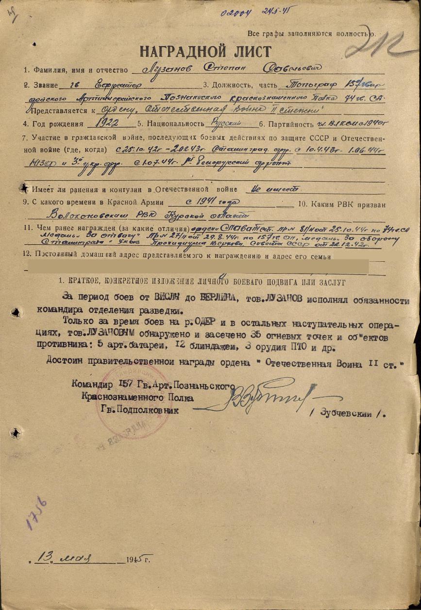 Моя бабушка, Кравцова Надежда Максимовна, 1922г.р., до войны - учитель младших классов- в 1941 году была мобилизована медсестрой в госпиталь, в котором и прослужила до сдачи немцам г. Старобельска, что в Луганской области. Госпиталь погрузили в поезд вместе с персоналом для эвакуации на восток, но немецкая авиация уничтожила его чуть ли не на вокзале. Спасали раненых. Оказались в окружении. Кое-как пережили оккупацию. Сразу после освобождения города была демобилизована и направлена снова в школу. Всю жизнь проработала учителем. Репрессирована не была. О своей службе говорить не любила "Все воевали, как могли". Статуса Ветерана ВОВ не имела - военкомат г. Старобельск сгорел в начале 50-х со всеми документами, восстанавливать их бабушка не собиралась. Из наград - "За доблестный труд в годы ВОВ" и юбилейные. Старший брат бабушки, Кравцов Пантелей Максимович, к началу ВОВ служил срочную в Прибалтике. Пропал без вести под Ленинградом. О месте захоронения ничего не известно. Младшая сестра бабушки, Кравцова Екатерина Максимовна 1923г.р. , по окончании медицинского училища в 1941 году мобилизована в должности военфельдшера. Прошла всю войну. Две нашивки за легкие и одна - за тяжелое ранение- при взятии Праги. После него была комиссована и демобилизована в звании гвардии младшего лейтенанта медицинской службы. Хромала до конца жизни. Всю жизнь после войны проработала в больнице г. Новопсков Луганской обл. фельдшером вместе со своим мужем- в годы ВОВ- фельдшером в партизанском отряде. Награды видел только на ее кителе, висевшем в шкафу. О войне говорить не любила.Поднять ее китель с наградами мне было трудно. К сожалению, когда она умерла я был еще мал и какие это были награды - не помню. Дед по матери всю войну провоевал в пехоте. Развелся с бабушкой в 1946-м., с тех пор о нем ничего не знаю. Дед по отцу, Власов Иван Петрович, строил и всю жизнь проработал рабочим на донецком заводе химреактивов. Остался с семьей в оккупированном Сталино. После освобождения вернулся в свой сернокислотный цех, где и проработал до конца жизни. На похоронах награды несли на красных подушечках перед гробом. Мне было 5-6 лет, помню только, что наград было много.