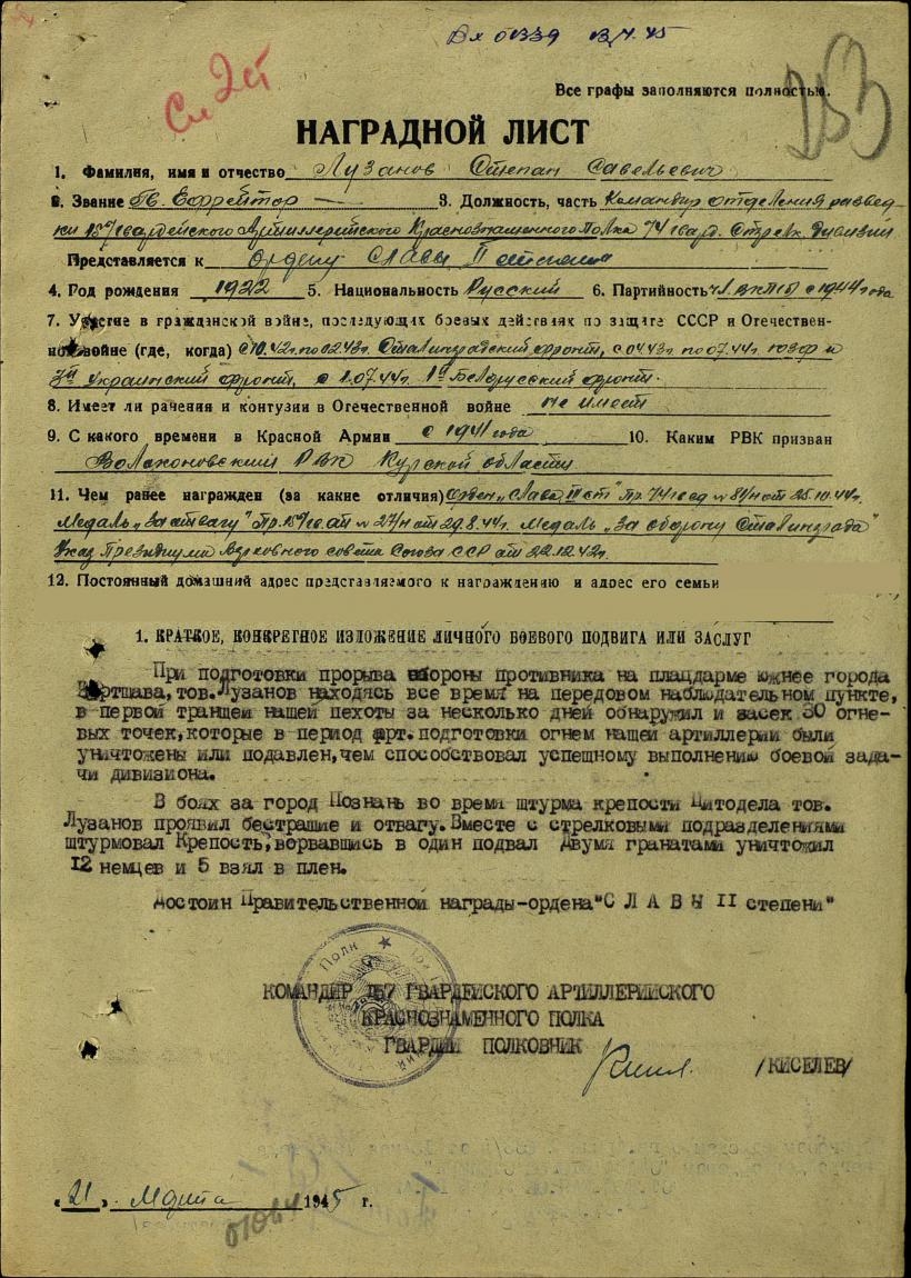 Hans, приветствую. Если я правильно понял - вы пишите о своем родственнике? Мой прадед Булдыгин Иван Феофанович командовал 3 пдб 1-й мвдб, информации о его батальоне крайне мало. Ваш родственник не из 3 gl,? случайно?
