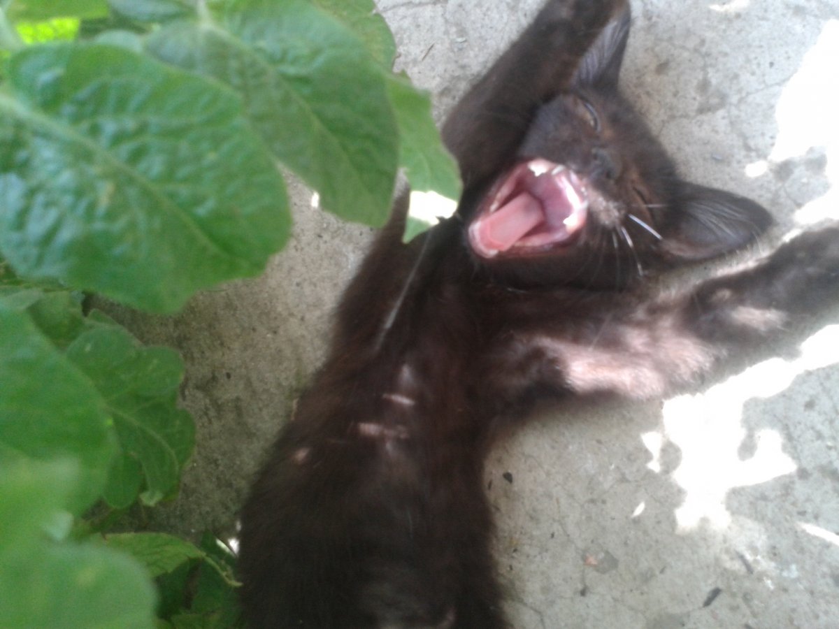 Вот мама ленивого котэ, пойманная на месте преступления (шото искала в пустом мешке из под муки, шо там можно было искать..? ) Ну и ленивый котэ в детстве