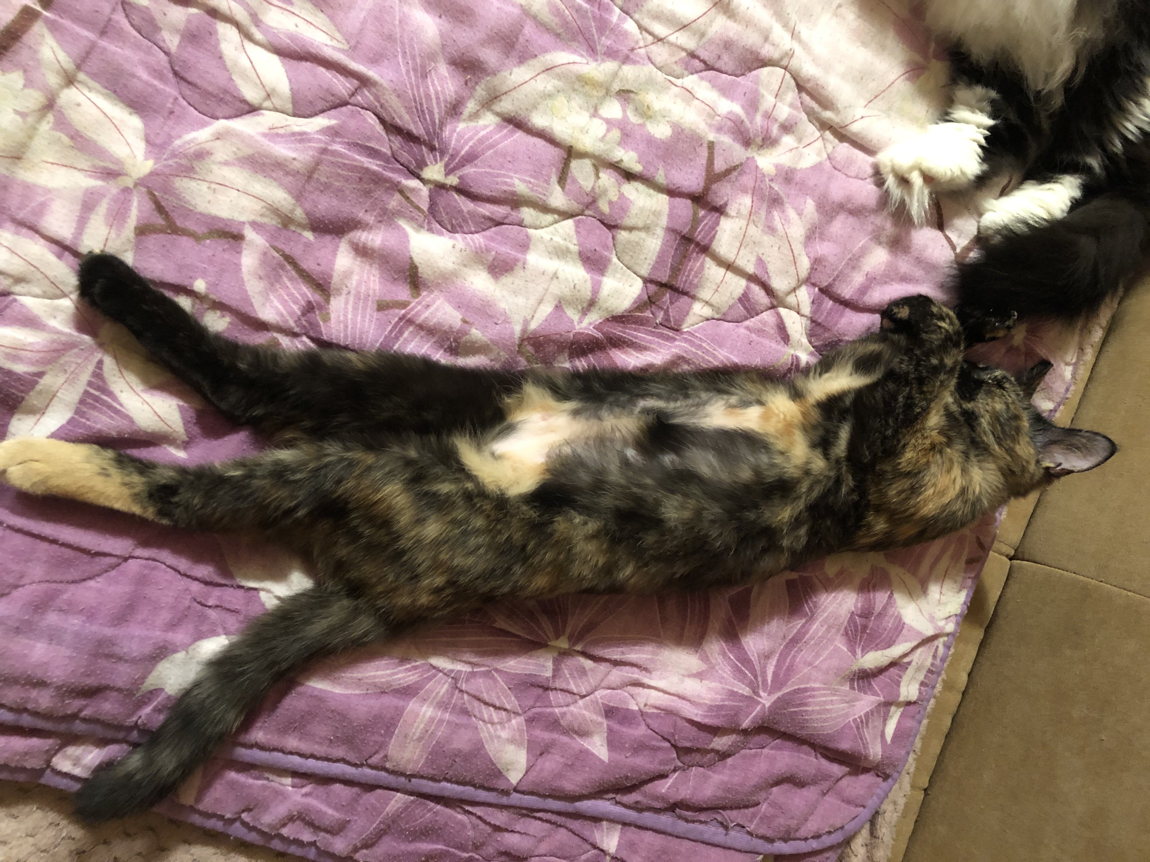 А цю кицю підкинули під двері. Вже доходила. Витягнули з того світу. Зараз позивний мавік. Літає по хаті підлоги не торкається. Жах.