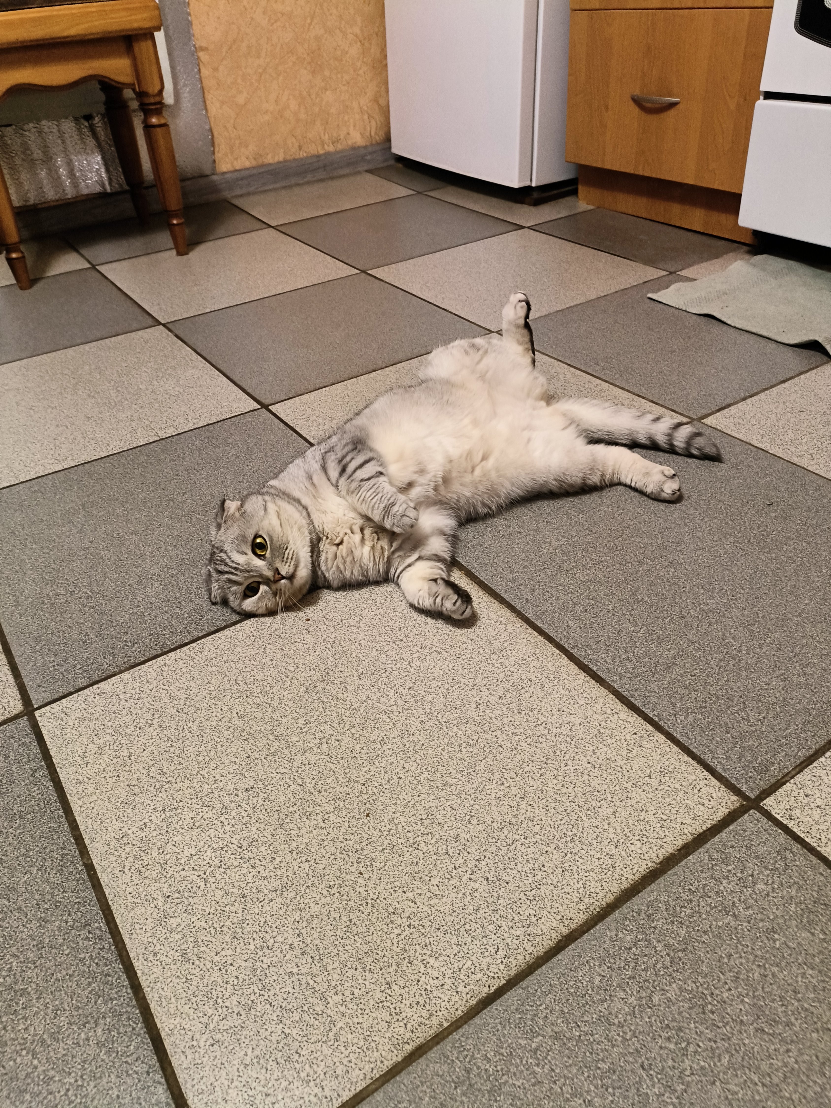 я сегодня своего во дворе найти не мог. то раньше в тенек прятался, то на плитке так же развалится и лежит. а сегодня нету и все. а этот плюшевый гад под машину залез. машинка умная, ликтрическая, так она сама себя то греет то охлаждает, переодически всяки вентиляторы себе запускает самостоятельно. так кот под машину и лег, там где вентиляторы правда кузел, толком ничего не ест, а так то аппетит отменный, ну воду конечно хлещет хорошо.