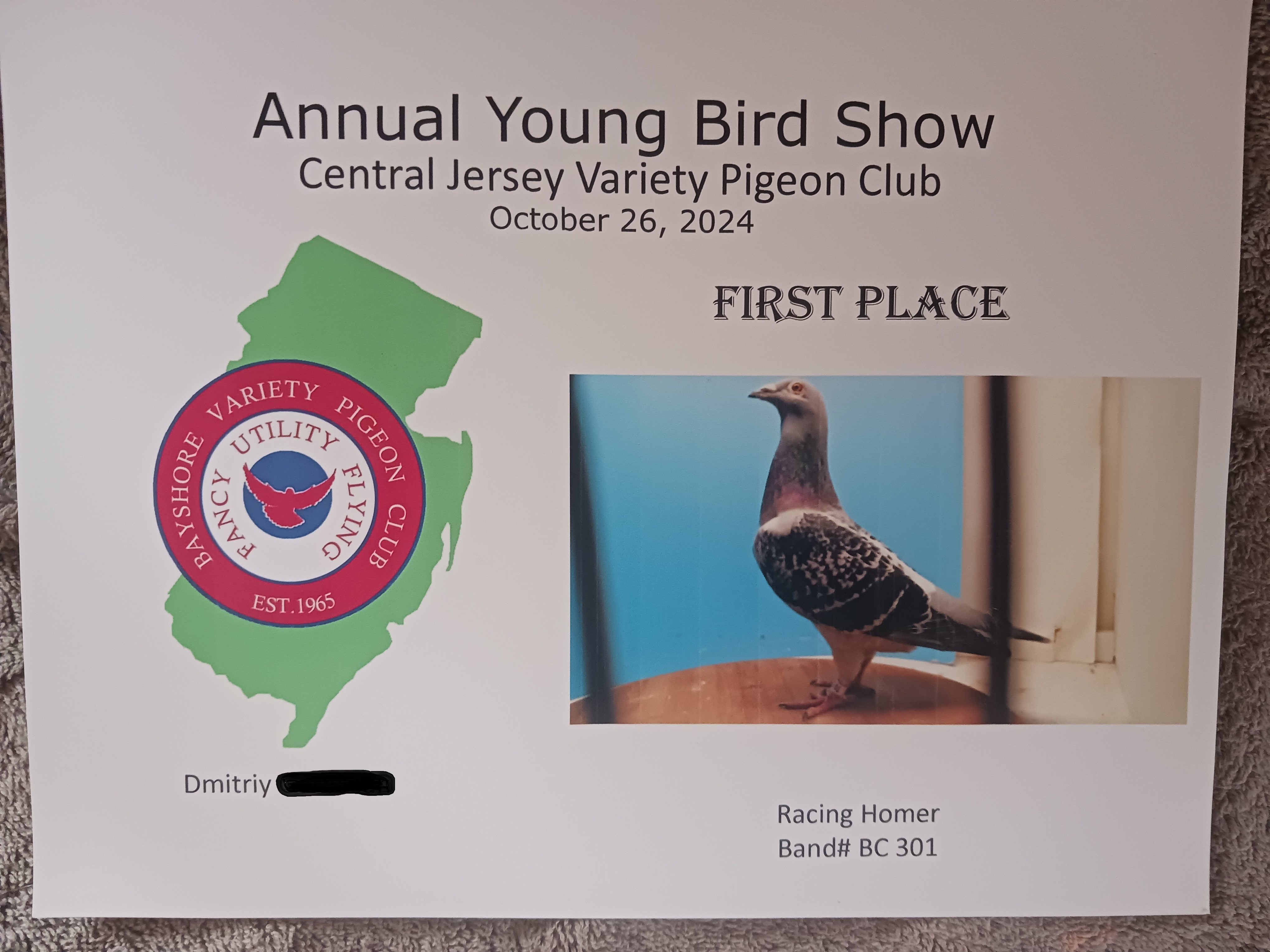 Мможет кому интересно. В субботу выставлял девять МОЛОДЫХ (этого года) почтовых голубей . Мальчик взял первое место. Девочка взяла первое место. Потом при выявлению лучший по породе, он выиграл у неё. Фотографии не совсем удачные.