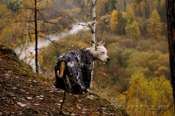 Понимаю, что стафу не для цирка, но не встречал пока их в комбезе. Всёж суровая порода. P.S. Хотя вот и менее суровым не кажется