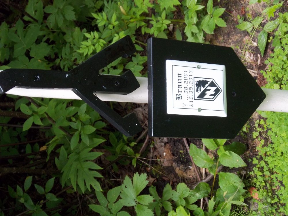 Вот мой. Когда умирал, я за деньи за ночь три пачки выкурил. Потом с другом похоронили, сели у могилки и трёхлитровку приговорили (и пьяными не были - нервное напряжение сильное видимо было). Двал троекратный залп из автомата. Позднее поставил памятник. Тяжело вспоминать...