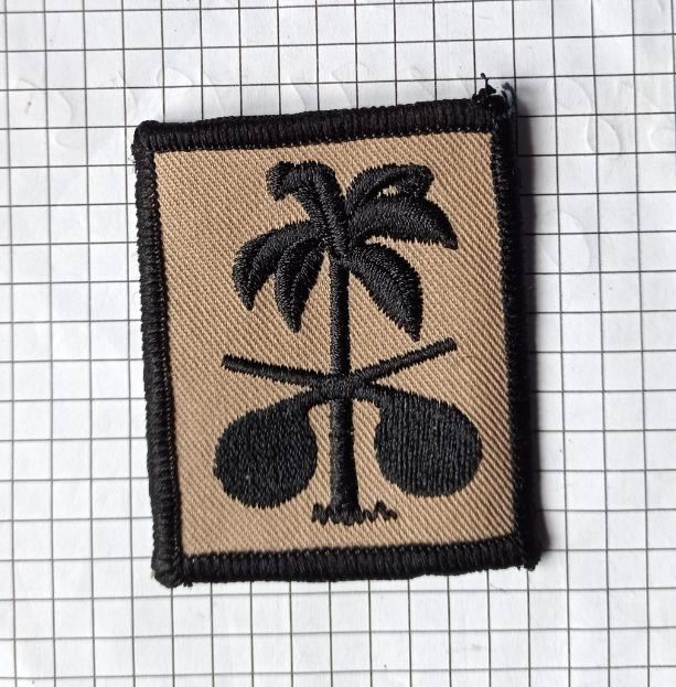 Приветствую! Нашивка британского типа. нарукавная. Две скрещенные колбы - бактерио- и химзащита. Пустынное исполнение, пальма указывает на Ближний восток как место действия.