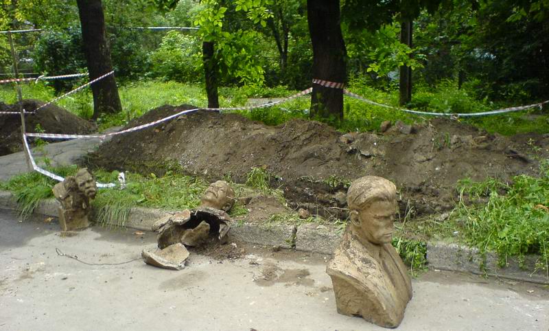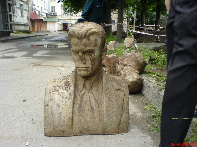 Думаю єто начало войны - немцы дали указание захоронить всё что напоминает украинцам о СССР. Заметьте что украинских классиков тута нема однако !