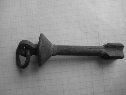 Добрий вечір! Ні в якому разі не хочу заперечувати тому, що сам не знаю напевне призначення цього предмета, просто викладаю свої сумніви та міркування. Конструктивно воно мені нагадує якийсь клапан чи пробку, конус у верху - щільно закривати отвір, хрестоподібний кінець а) перешкоджає прекосу клапана у гнізді при русі уверх-низ, b) пропускає через себе рідину чи газ. На додаток кільце, яке проситься щоб його потягнули, а не крутили. Але - це тільки теорія, а що насправді - хз.