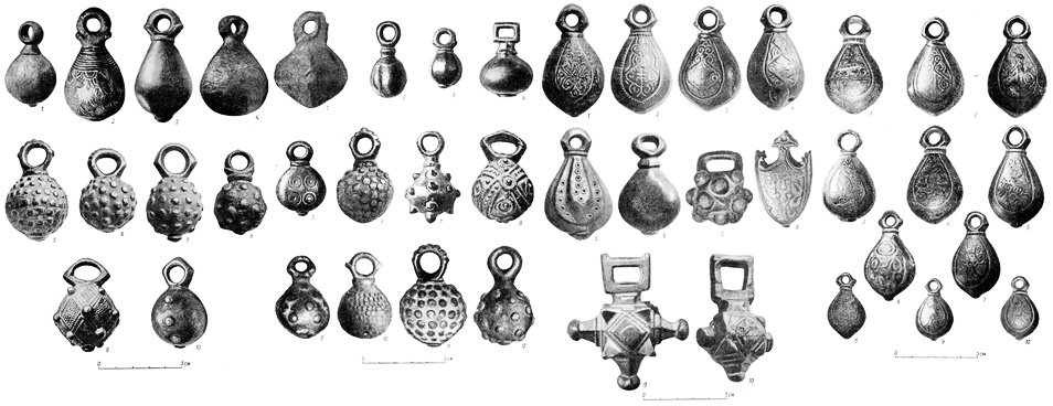 Первое - остатки кистеня, второе бубенчик, все К.Р.