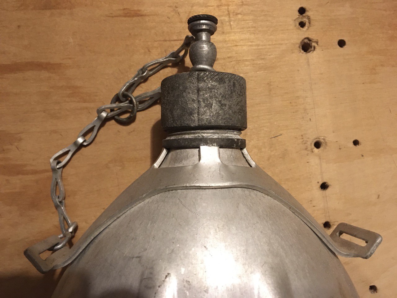 Що до комплектності кришки все ж роздивився що помилився. Не вистачає короткого ланцюжка та його кільця. То ж попередній власник перечепив довгий ланцюжок на корок поїльника , а інший кінець з ремінної проушини на горло. Але все одно є сенс доукомплектовувати за нагоди. Ось так виглядає комплектна кришка (не тільки Моделло 35, 30 та 33, Равері також) та кріплення обох ланцюжків.