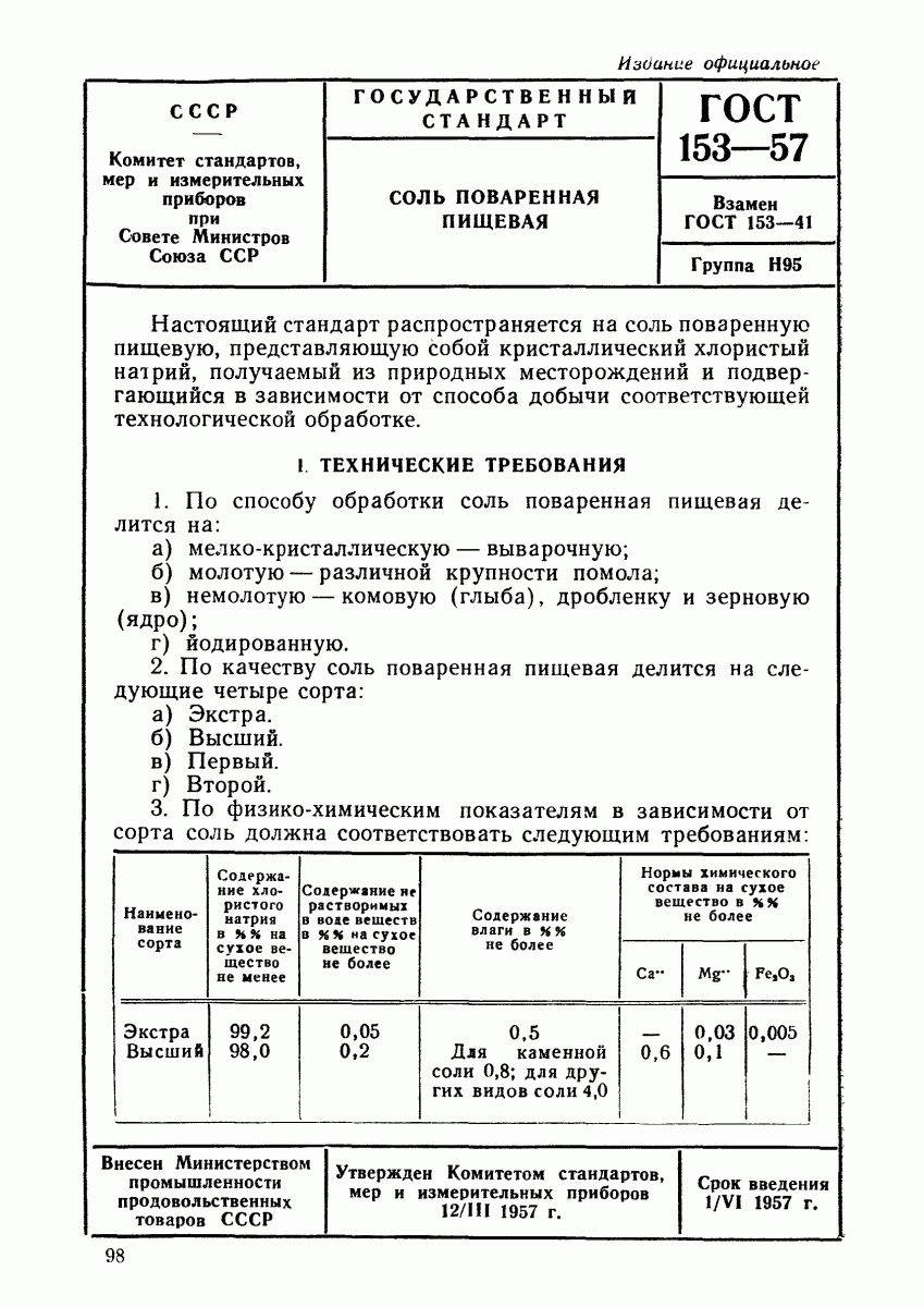 На соли - ГОСТ 153-41. Действовал до 1957 года.