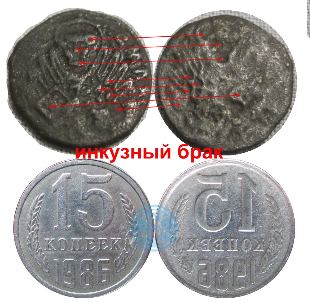 Ну, нумизматы, все меня поняли...))) Иначе бы уже закидали гнилыми помидорам))) Почитайте, пожалуйста, статью про инкузный брак... https://sovmint.ru/inkuznyj-brak-zalipuxa/ По поводу того что "букв не видно" : эти монеты чеканили не на станке, а вручную, и нижняя заготовка имела смещение относительно верхней... вот буквы и не попали... По поводу того что "лев не совпадает" - специально для Вас стрелками указал основные контрольные точки: