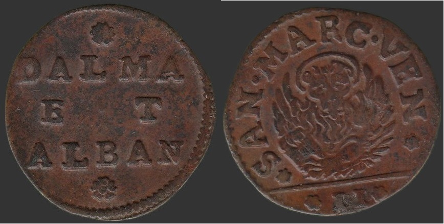 Доброго дня. Серединка від венеціанської монети 2 сольдо (гасета), карбованої для Долмації та Албанії ...