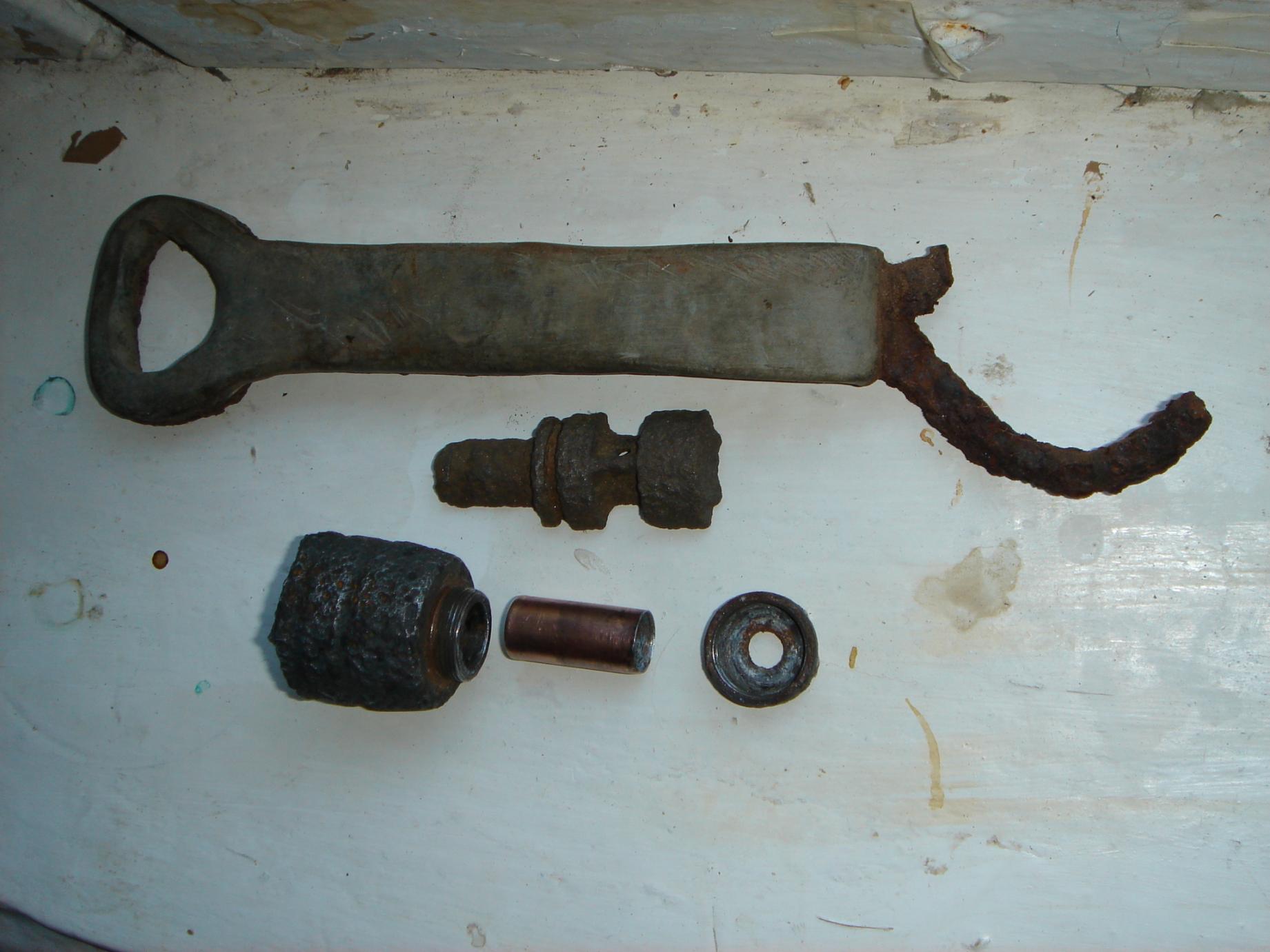 Собственно вот за последнее время.Вопрос по 2-й и 3-й фотке: 1.Верхний и средний предметы от чего могут быть?Верхний сверху покрыт латунью,основа-железо. 2.От какого снаряда жопа?Таких еще не встречал.Калибр 37мм,внутри медный стаканчик от трассера.