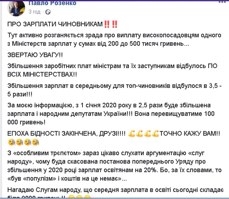 Навіть Розенко не втримався і почав писати - учителям 9000грн. середня зарплата. А пенсії. Так тут повний пєсєц. Бувший комуняка, а зараз опоблоковець - 300 000 у місяць... О у кого комунізм прийшов при "нєзалєжной".