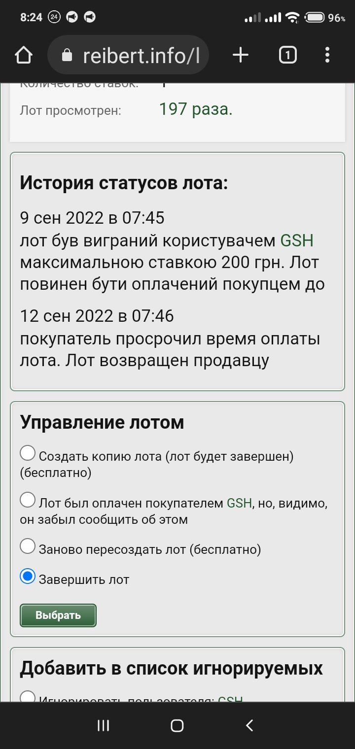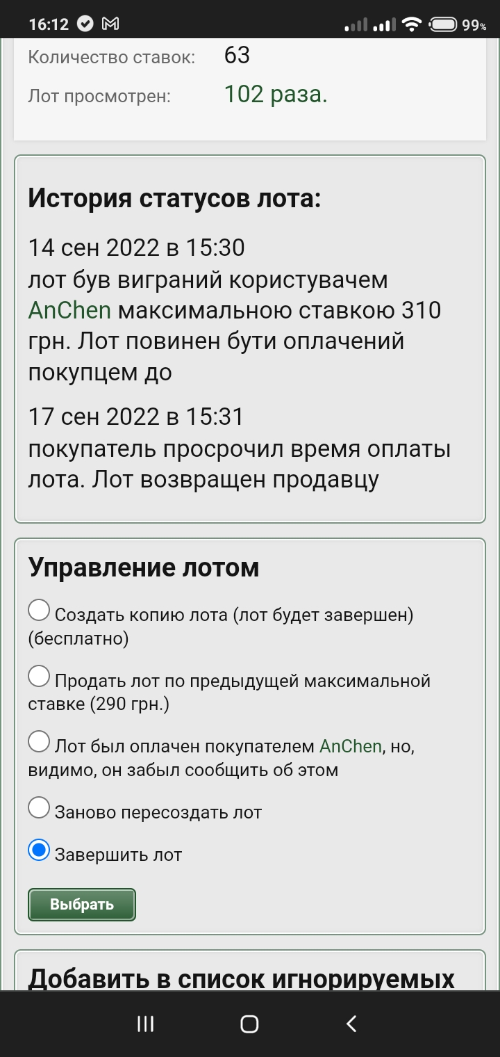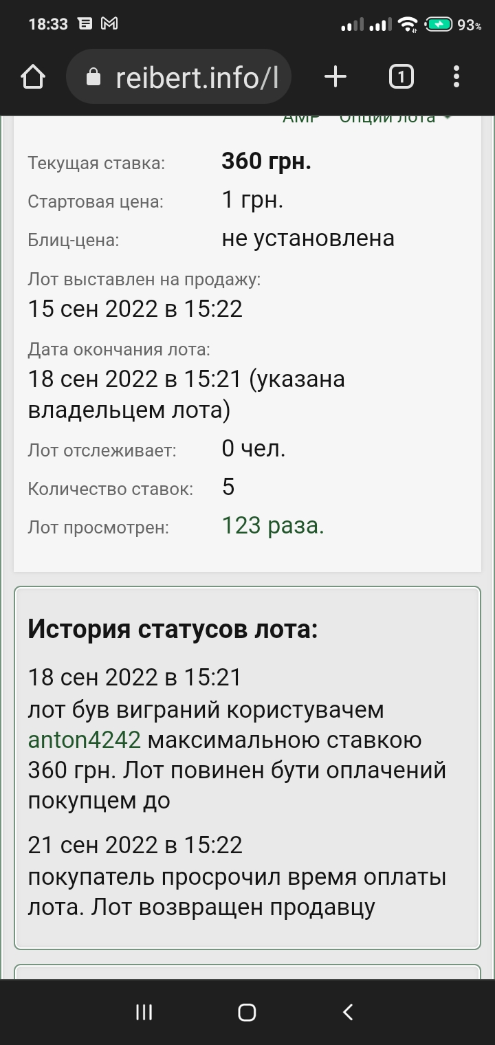Не выкуп лота