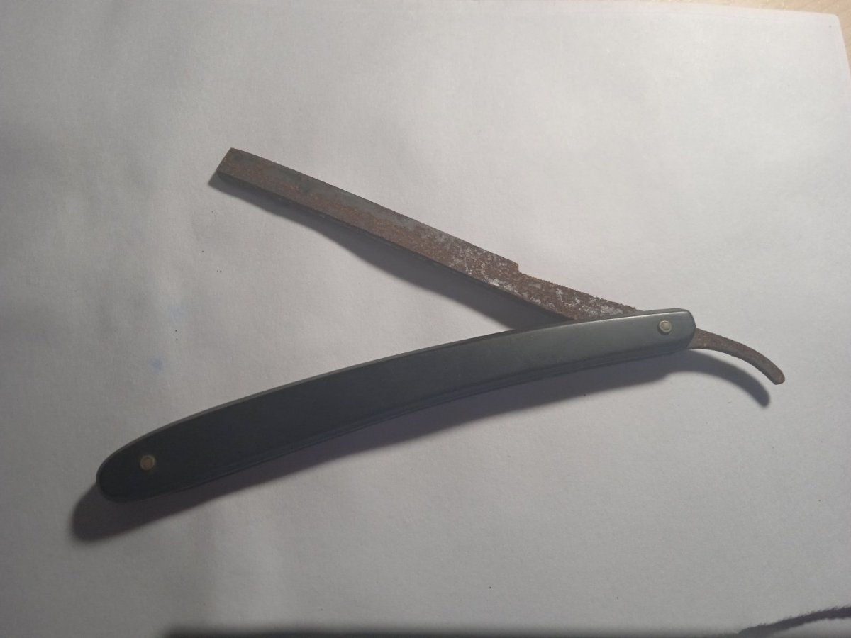 Тряпочка , думаю слово заимствовано , онучи это у северных народов портянка намотанная на икроножную мышцу образуя эрзац голенище . После ВД металл будет темный а это бритве не присуще . Я лимонной кислотой чистил конечно если глубоких каверн нет.