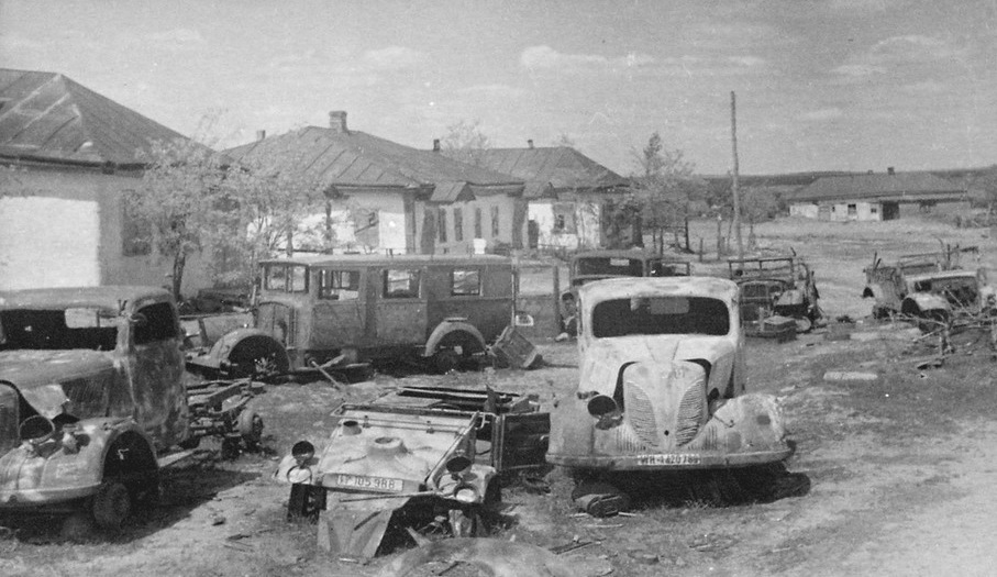 1) здесь не смог разобрать что за Maultier 2) Mercedes-Benz 170VK 3) фотография известная, модель определить не хватает компетенции. а грузовик на заднем плане - и марку определить не могу )) 4) Morris CS8 5) Opel "Blitz" 3-t 6) вроде Ореl "Blitz", какой не знаю. похоже что с битыми стёклами. что уничтожен - не факт 7) похоже что тоже Ореl "Blitz" и тоже какой не знаю 8) ну здесь в канавах много чего валяется )) какой блиц тоже не знаю 9) Peugeot DMA. что слева не могу понять 10) тоже фота известная - Peugeot 402