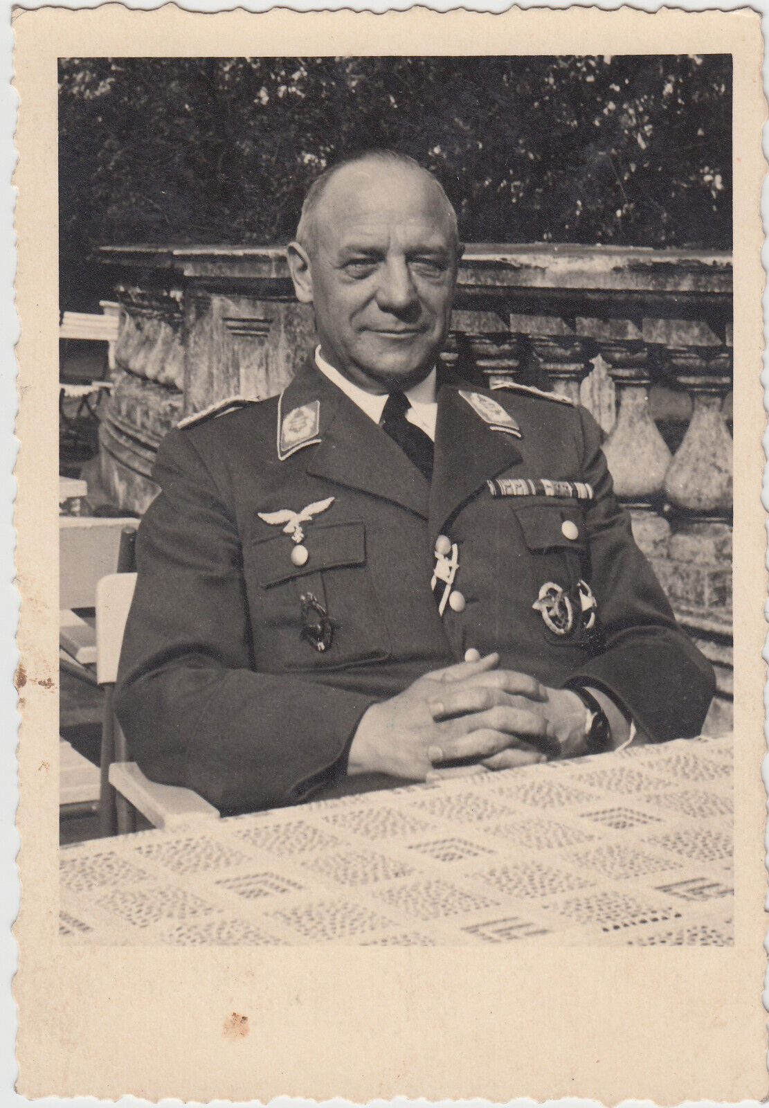 Без понятия...поэтому в интернете сижу уже битый час ниодного упоминания нет...но человек 100% реальный скорее был либо летчиком либо командующим, потому что знакомый, который видел архив на этого человека помнит лишь слово "более 100 успешных операций", так же награждал его и еще 20 человек сам Гитлер (было фото)