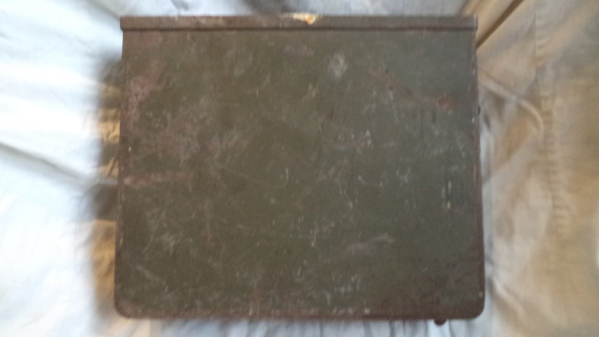 Доброго времени суток!Подскажите по находке,нашел на чердаке такой ящичек..Как бы и для ремня крепления,но совсем не понятно его назначение и какого времени?Сохранилась окраска.какие то буквы.Может у кого есть мысли?Всем ответившим Спасибо.
